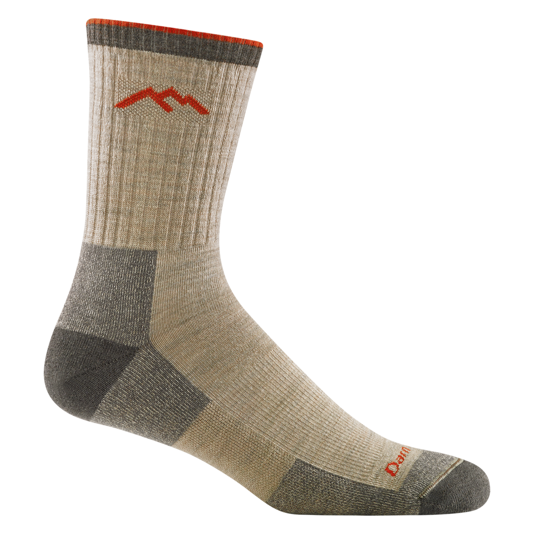 Men's micro crew socks average 8.5 in. from heel to cuff - expect them to show about 6 in. above a low hiking shoe or just above a standard hiking boot.